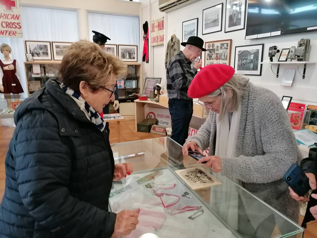 Après un passage à l’Américan Muséum ou Betty a rencontré Mike Gagné, son camarade de classe, et un passage à Touvent, pour retrouver le bâtiment K et l’appartement du rez de Chaussée ou elle habitait, Le groupe s’est retrouvé dans les locaux de la maison départementale de la mémoire militaire pour une longue séquence de visite des deux salles consacrées à la présence des Américains dans l’Indre de 1952 à 1967. Yves Chambon, présent sur place, a pu évoquer cette période avec Betty.