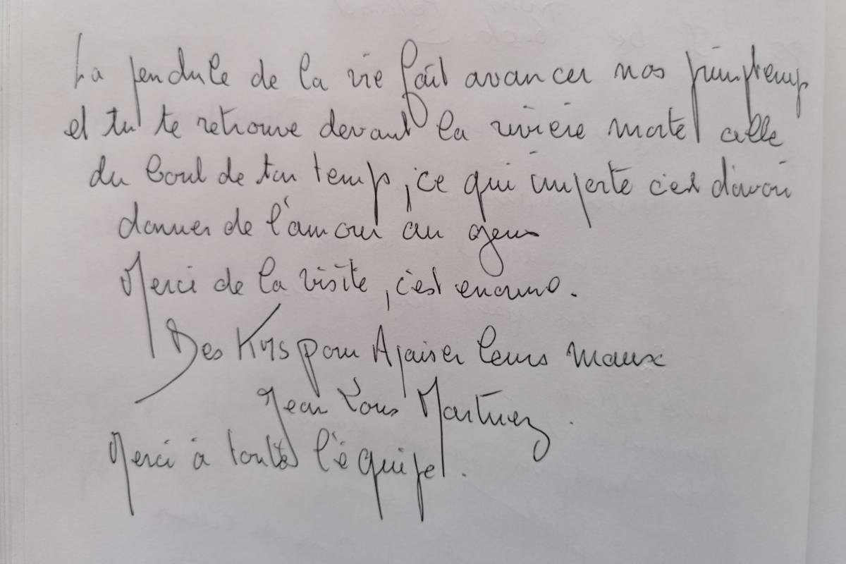 Souvenir du passage de Jean-Louis Martinez sur le livre d’or de l’association