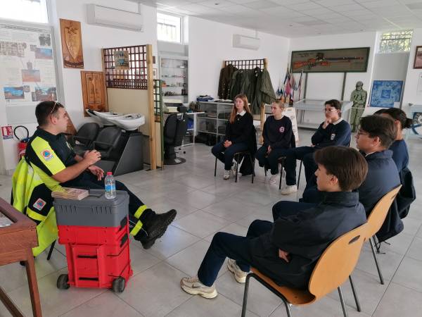 La mise à disposition des locaux pendant l’après-midi a permis l’apprentissage du métier de gendarme dans les domaines du secourisme et des transmissions, la connaissance des grades, sans oublier la révision des couplets et du refrain de La Marseillaise ainsi que l’apprentissage des rudiments de l’ordre serré avec un gendarme réserviste. La descente des couleurs a clos cette journée de formation à La Martinerie