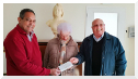 reçoit le chèque des mains de Monsieur et Madame Clauzade