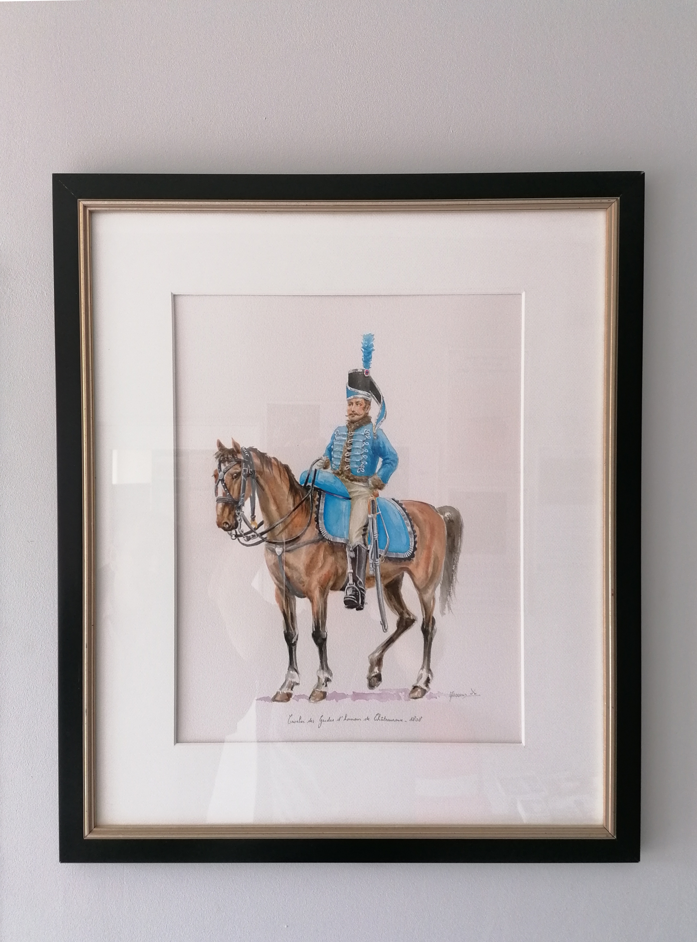 Peintre officiel de l’Armée, et adhérent des Amis de La Martinerie, Olivier Jarraud a décidé de nous offrir l’une de ses aquarelles intitulée "Garde d’honneur de Châteauroux".